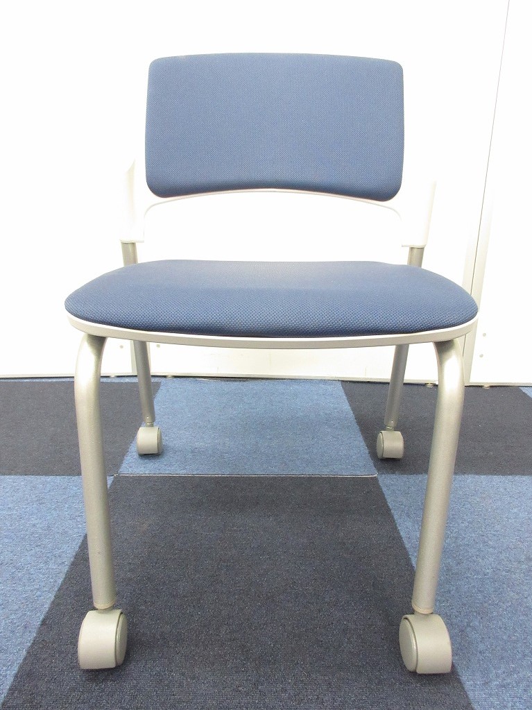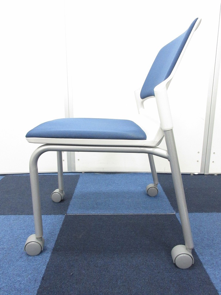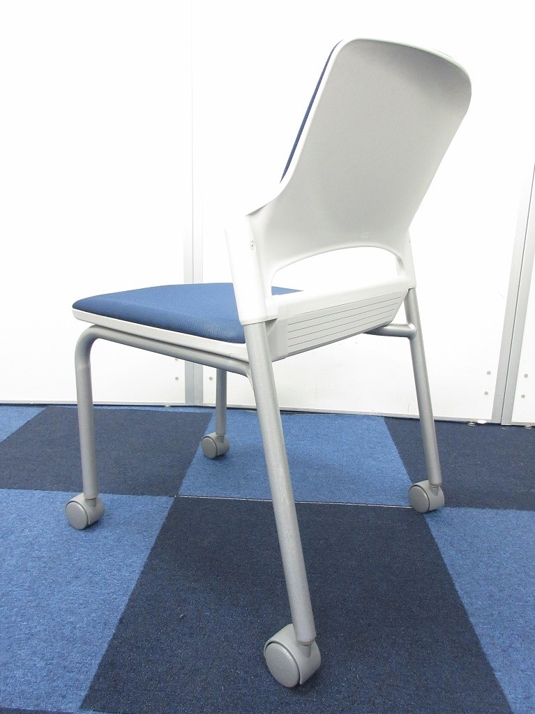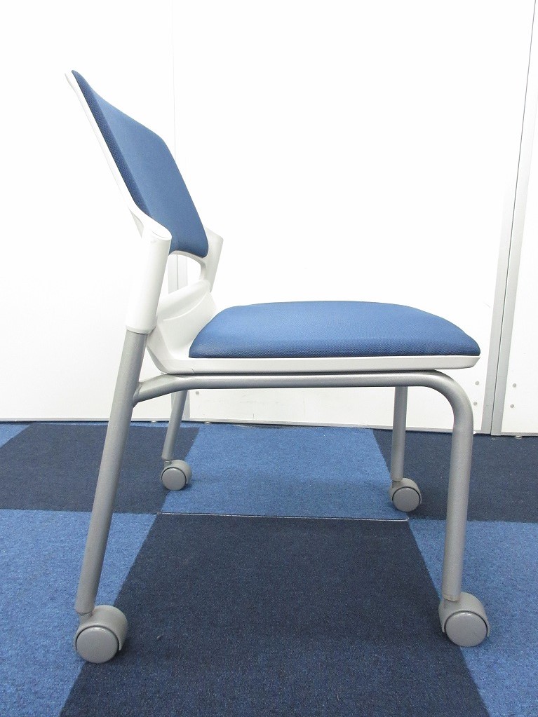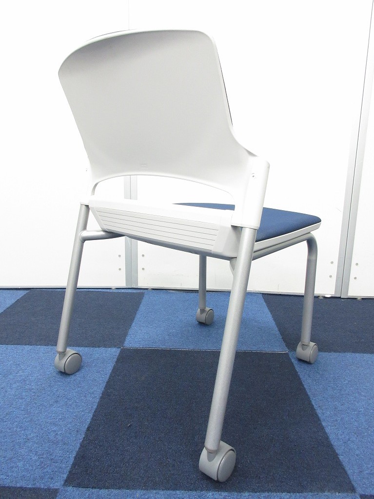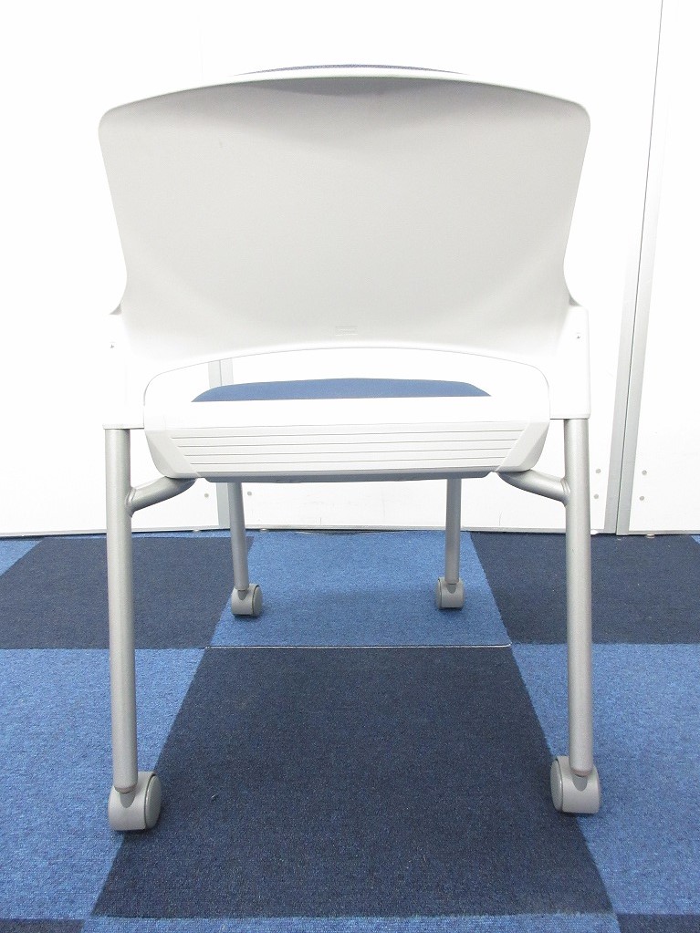 【残り2脚の為、お安く!】【キャスター付きで使いやすい!ミーティングに最適!】■ウチダ(UCHIDA)製 MF-180シリーズ スタッキングチェア ミーティングチェア ■キャスター付き ■レイズンブルー×ホワイトシェル