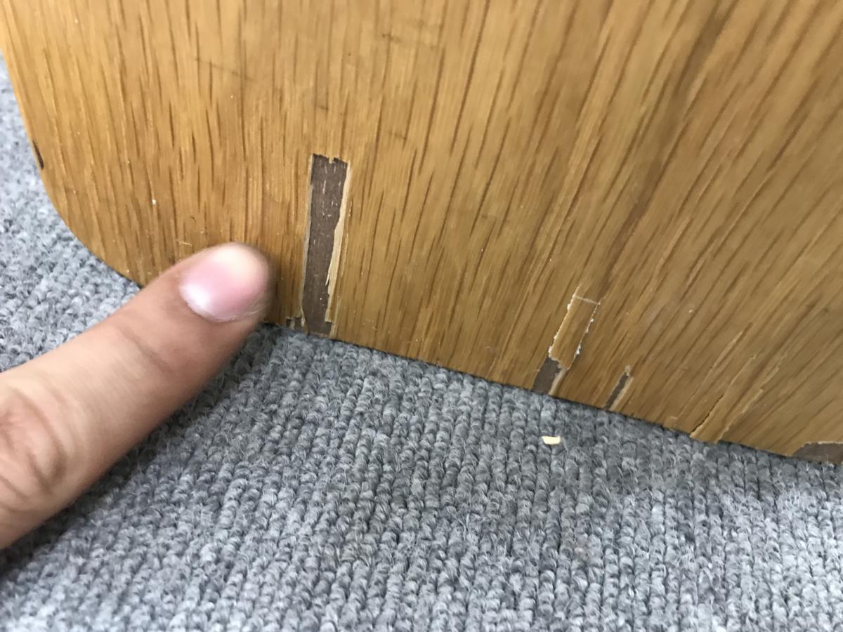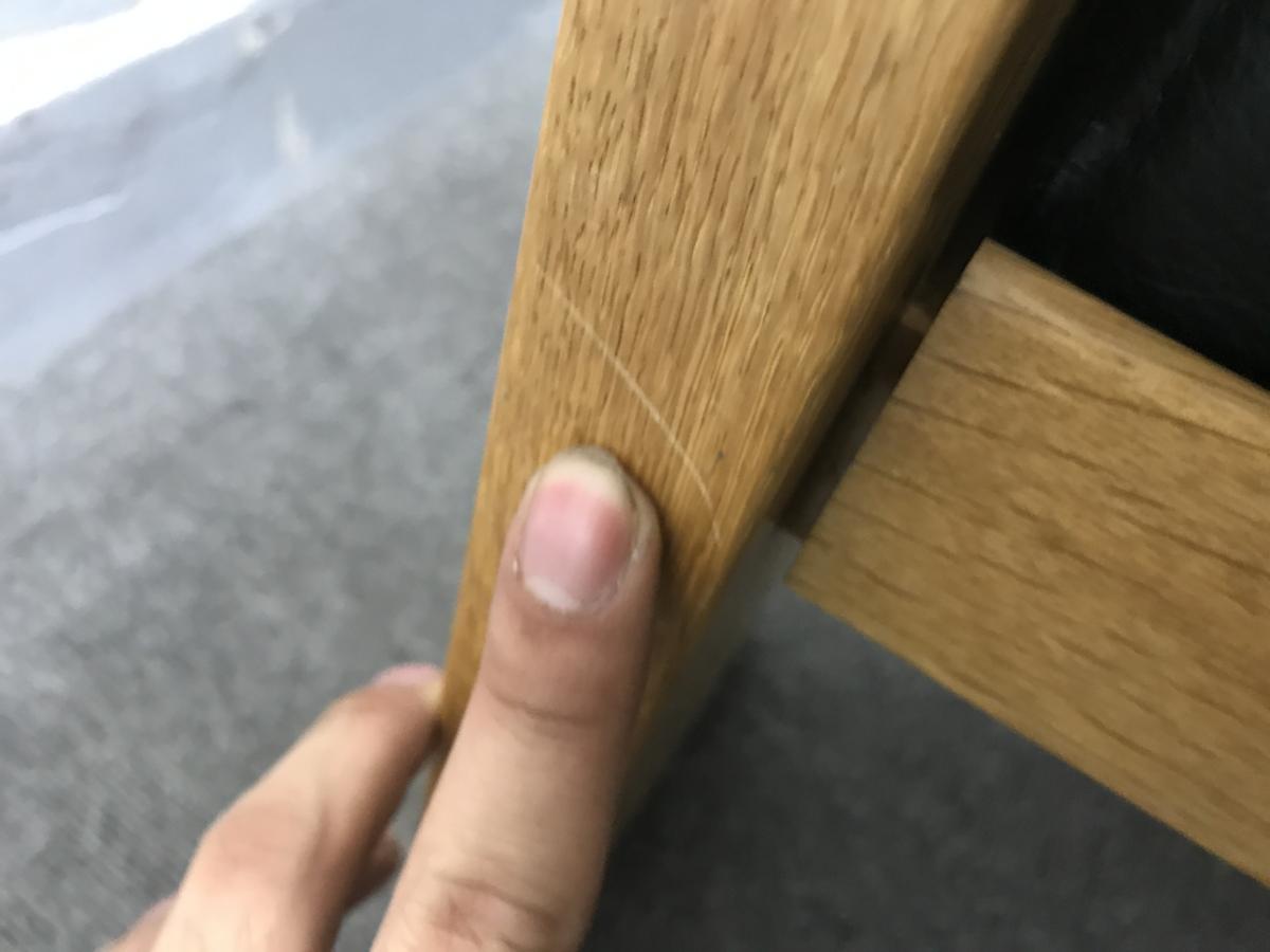 - 目立つ箇所ありソファの場合、破け、ホツレ、へたり、しわ等が多数または深い破け、ホツレ、へたり、しわ等一部ある。(例、背もたれ、肘かけ、座面等にある。)センタ>ーテーブルの場合、傷・凹みが多数または深い傷・凹みが一部ある。(例、天板、脚にある。)