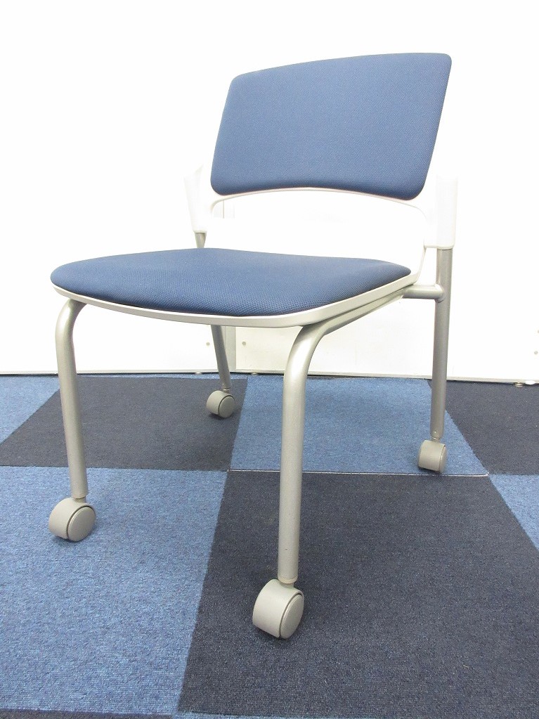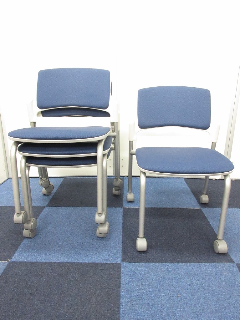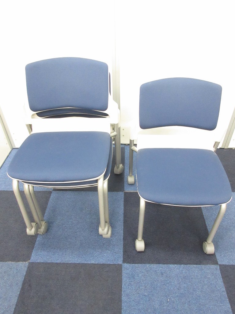 【残り2脚の為、お安く!】【キャスター付きで使いやすい!ミーティングに最適!】■ウチダ(UCHIDA)製 MF-180シリーズ スタッキングチェア ミーティングチェア ■キャスター付き ■レイズンブルー×ホワイトシェル