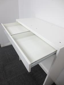 - 一部不具合あり天板歪み、引出開閉不可、アジャスター無し、施錠不可のようにそのカウンターの本来の効用を果たすための機能以外の一部が使用不可な状態。(例、引出が 開閉しづらい等がある。)