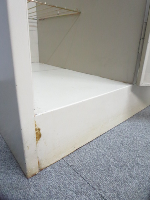 - かなり強い黄ばみ・変色が商品全体にある。(例、天板、正面、背部、サイド部分にある。)