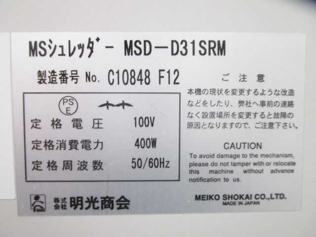 【中古】 MSD-D31SRM 明光商会 シュレッダー 207153