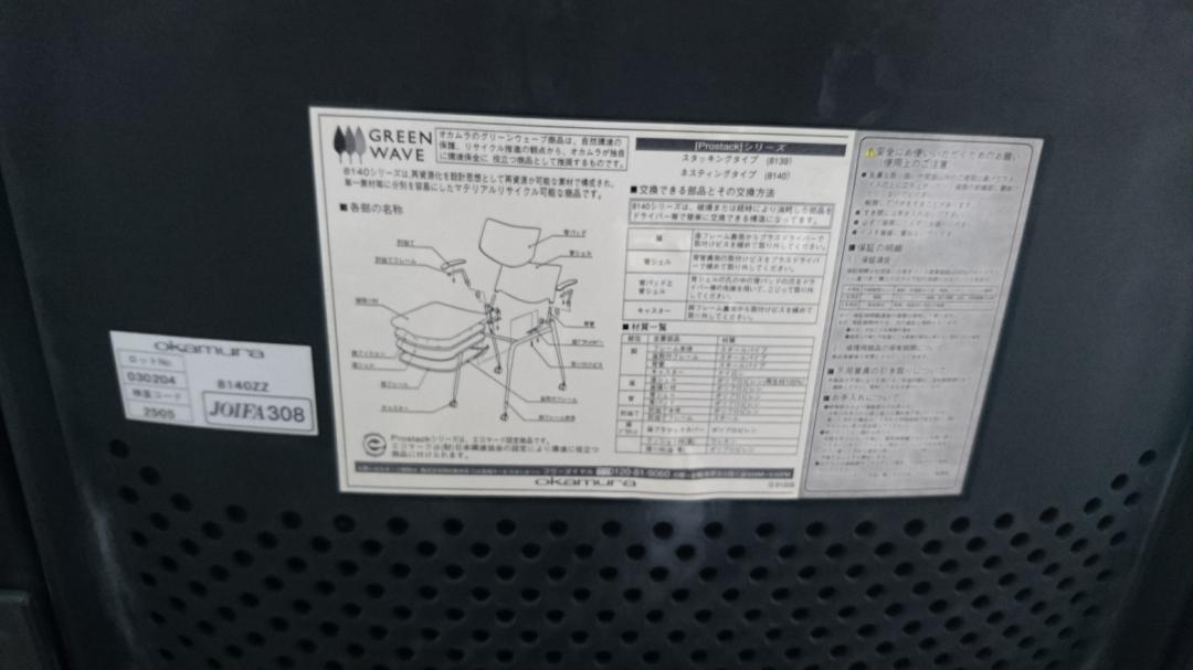 【中古】 プロスタック 8140ZZ オカムラ/okamura スタッキングチェア 207184