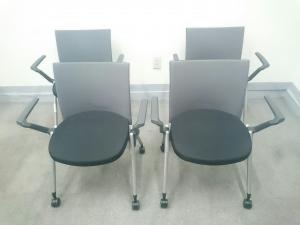 【4脚セットで¥2,000お得‼】内田洋行製(UCHIDA) ミーティングチェア スタッキング■使わないときは積み重ねて置いてスペース有効活用!![キャスター付き]- つくば店