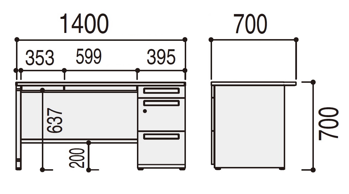 - 平机だけでなく、袖机・脇デスクワイドデスクなど、ラインナップ豊富です。