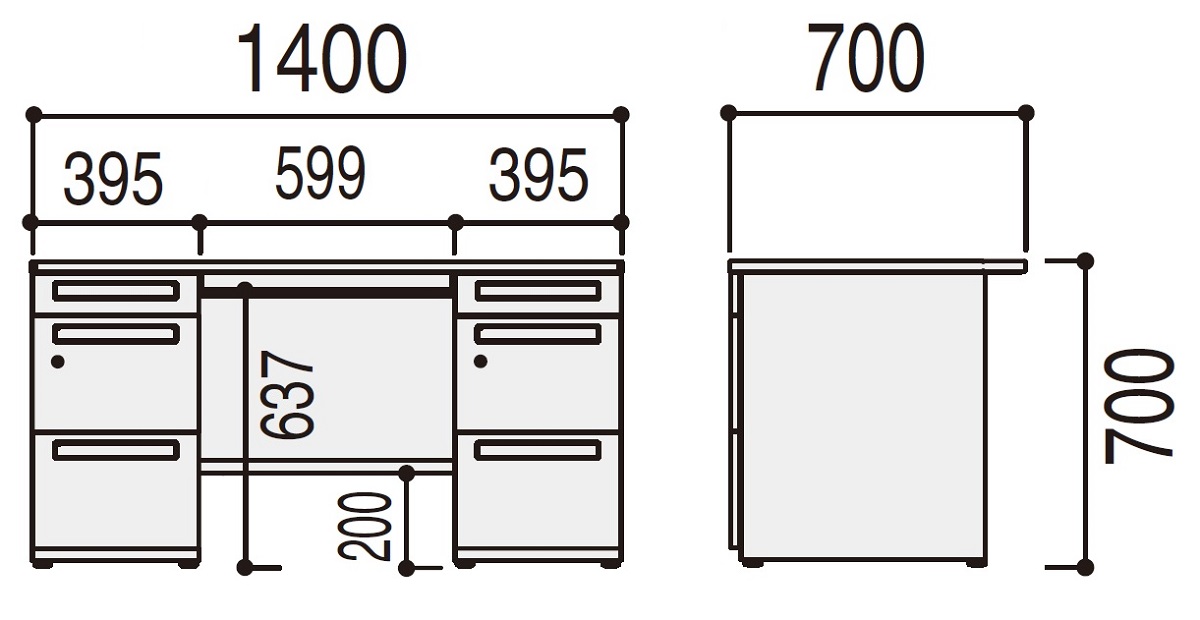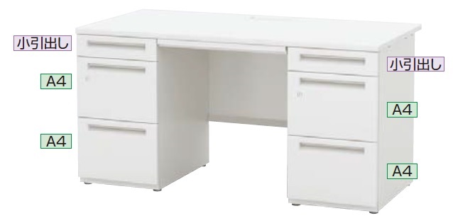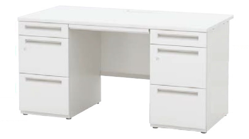 国内メーカー製 W1400mm両袖机 本体ホワイト ※高さ700mm- 全店共通商品