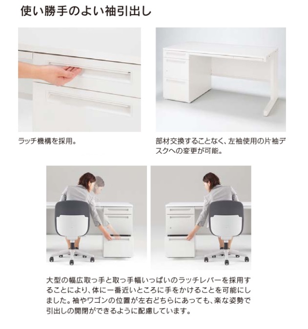 - 平机だけでなく、袖机・脇デスクワイドデスクなど、ラインナップ豊富です。
