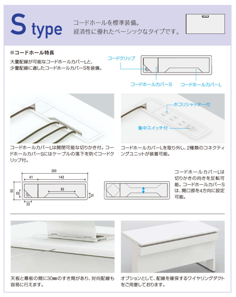 - リーズナブルなスタンダードタイプでありながら、配線の美しさ、引出しの使いやすさなどの機能性を備えています