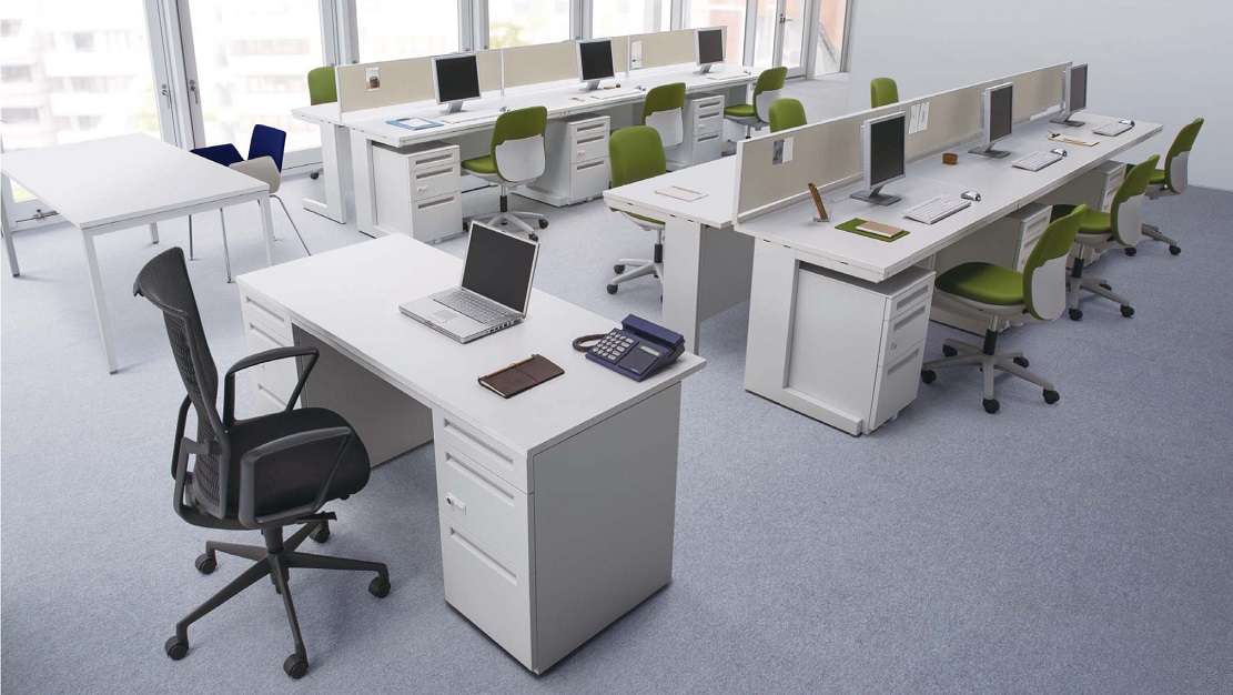 - 机の角がシャープなので、隣り合うデスクがフラットにつながります。すっきりとしたデザインです。