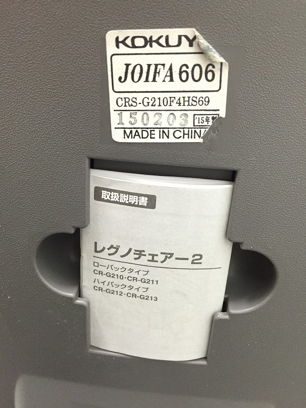 【中古】 レグノチェア2 CRS-G210F4HS69 コクヨ/KOKUYO 肘無ローバックチェア 207281
