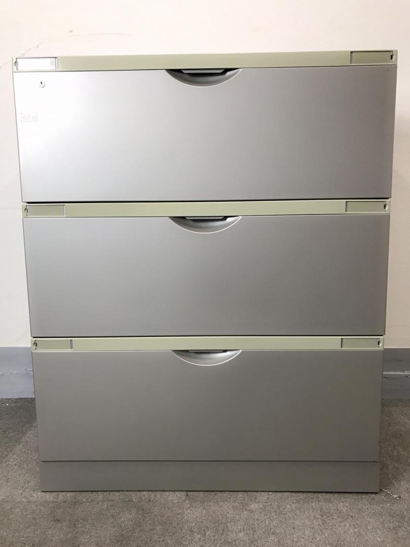 【6台入荷‼】イトーキ製(ITOKI) 3段ラテラル書庫■A4ファイル3段収納可能!!便利な引き出しタイプで書庫の中身を立った状態で一目で確認でき、収納物も取り出しやすいです‼- つくば店