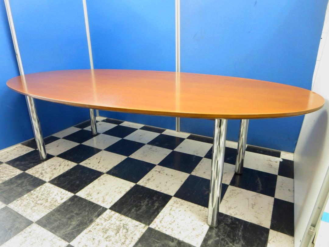 【¥18,000→¥10,800(40%OFF)】【おつとめ品の為お安くご提供】楕円形の一風変わったテーブルでミーティングルームを作りませんか【GM】【中古オフィス家具】- 埼玉本店