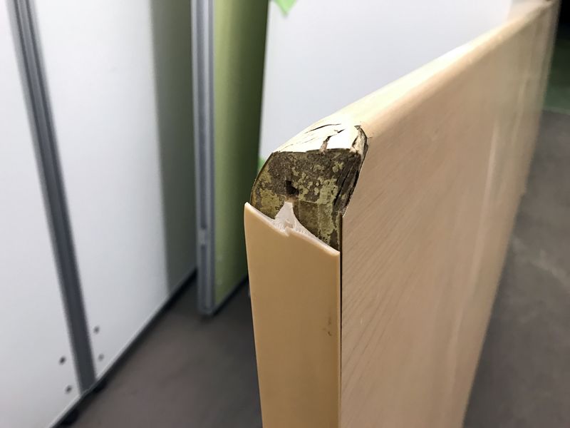 - 壊れている天板歪み、アジャスター無し、キャスター使用不可のようにそのテーブルの本来の効用を果たすための機能に不具合がある。