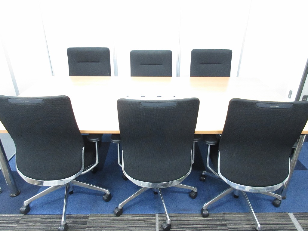 ブラックのチェアに木目調のテーブルで会議室等にピッタリです!