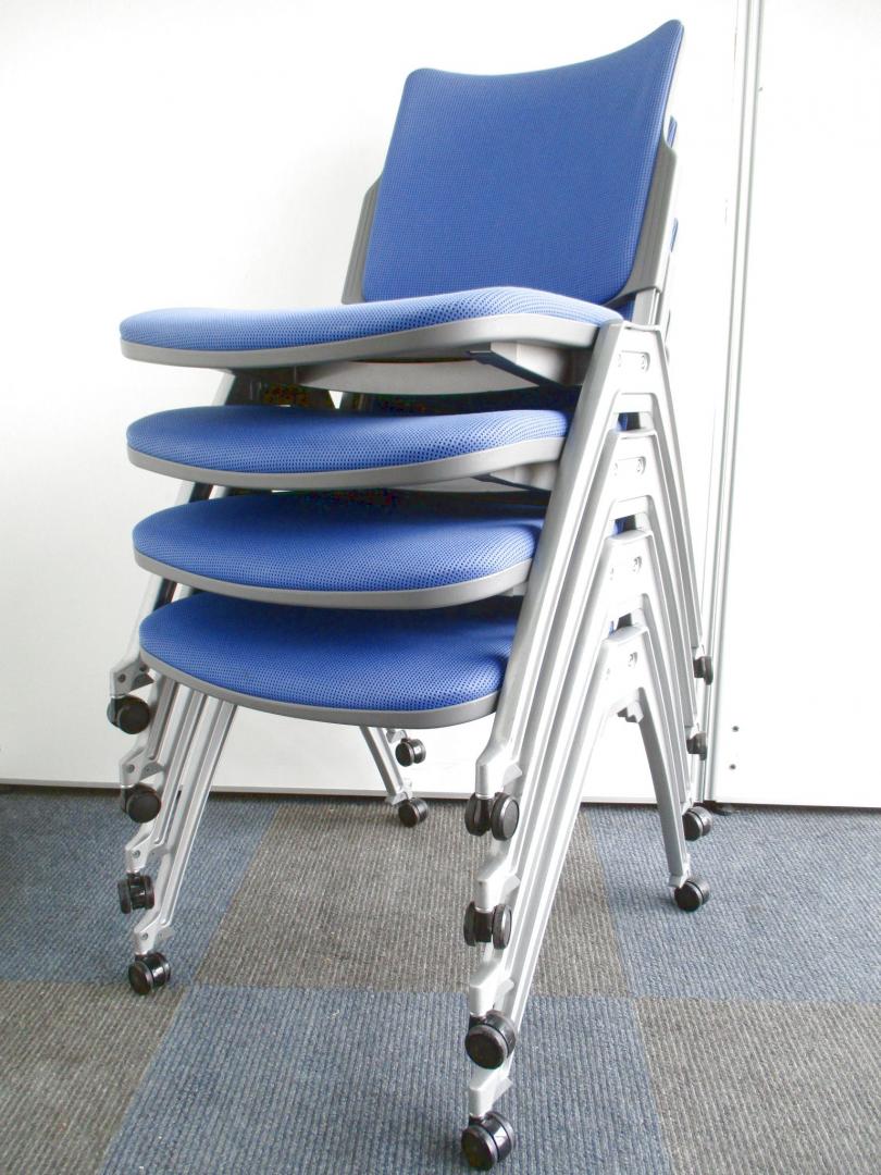 【積み重ね可能なチェア!】ウチダ製のブルー色!【ミーティング時におすすめ!】- 千葉店