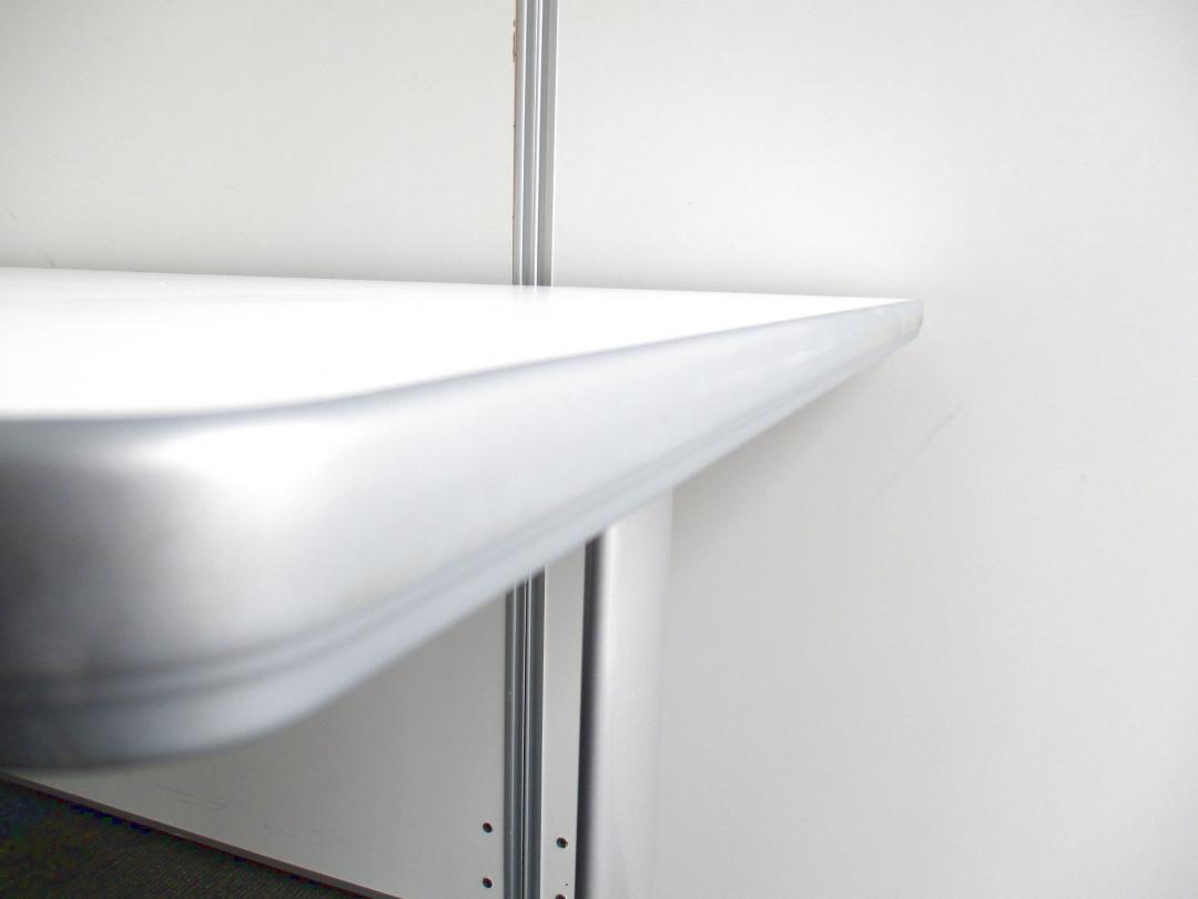 - 一部不具合あり天板歪み、アジャスター無し、キャスター使用不可ようなそのテーブルの本来の効用を果たすための機能以外の一部が使用不可な状態。(例、キャスターロッ ク機能使用不可、棚板無し等がある。)
