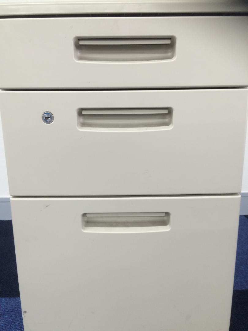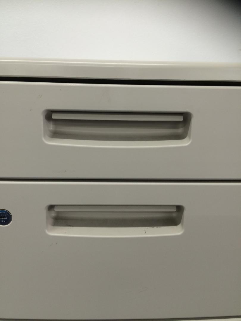 - 一部不具合ありその脇机・ワゴンの本来の効用を果たすための機能以外の一部が使用不可な状態。(例、引出が開閉しづらい、 キャスターロック機能使用不可、ラッチ不良 等がある。)