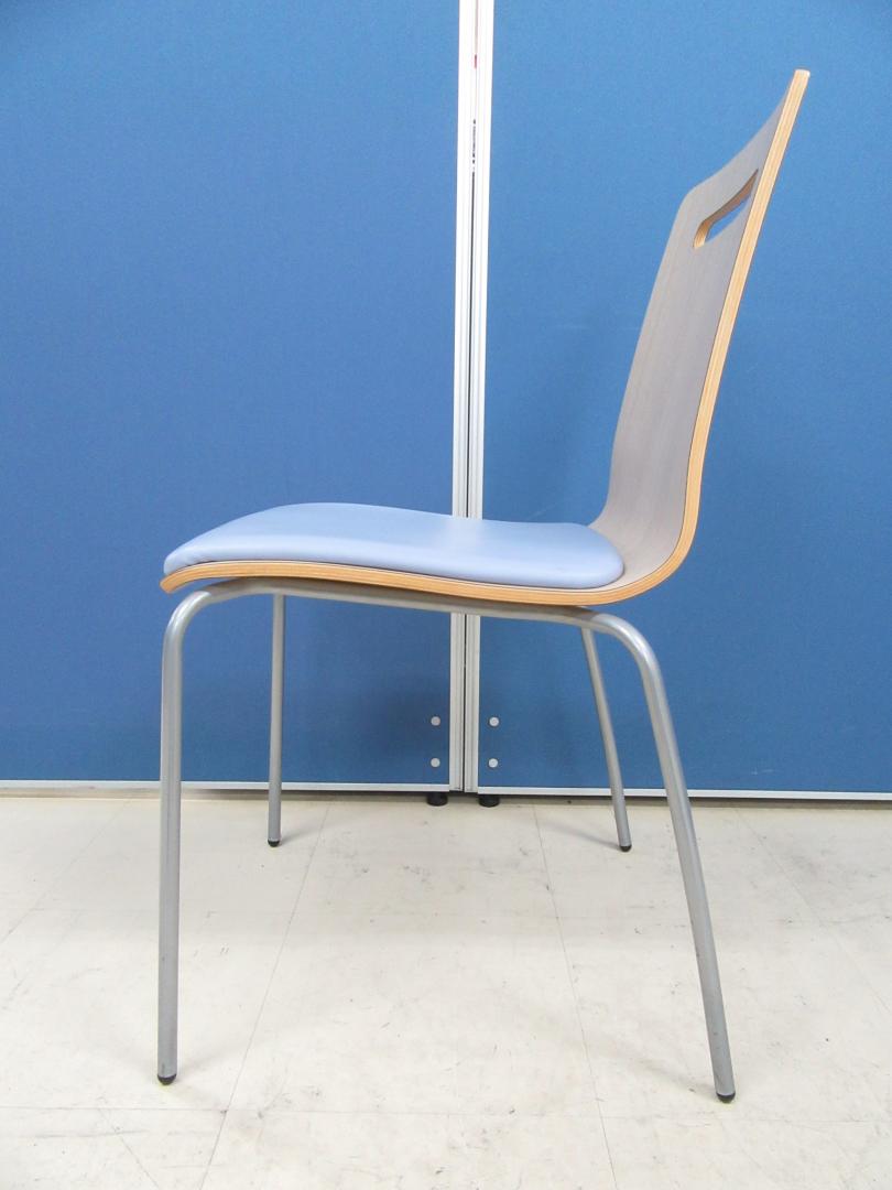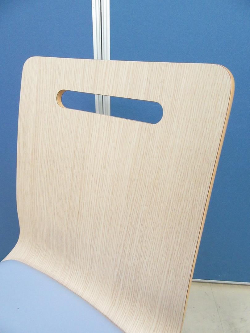 [単品購入¥14,000⇒セット購入¥13,000]スタッキングチェア キーノ2 4脚セット■ナチュラル(木目)×ライトブルー■ビニールレザーでお手入れ簡単!!食堂や休憩室のチェアとしておすすめです!![フードコートチェア]- 足立・葛飾店