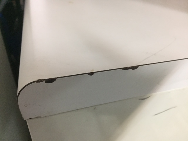- かなり強い濃い黄ばみ・変色が商品全体にある。(例、天板、正面、背後、サイド部分にある。)
