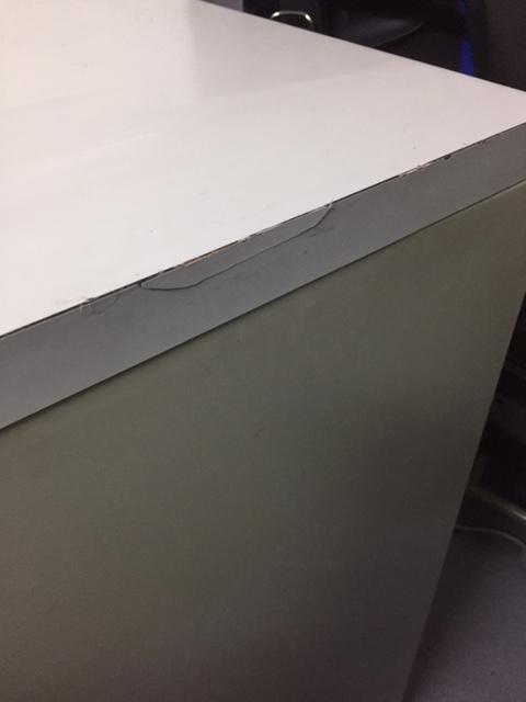 - 壊れている天板歪み、引出開閉不可、アジャスター無し、施錠不可のようにそのデスクの本来の効用を果たすための機能に不具合がある。