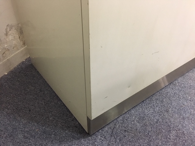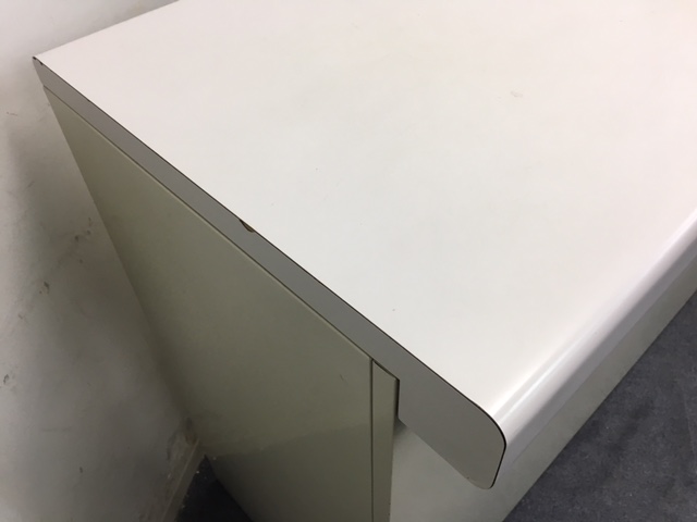 - 一部不具合あり天板歪み、引出開閉不可、アジャスター無し、施錠不可のようにそのカウンターの本来の効用を果たすための機能以外の一部が使用不可な状態。(例、引出が 開閉しづらい等がある。)