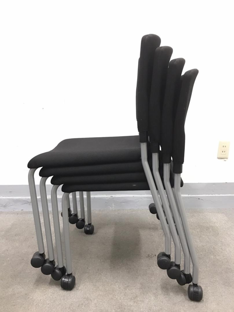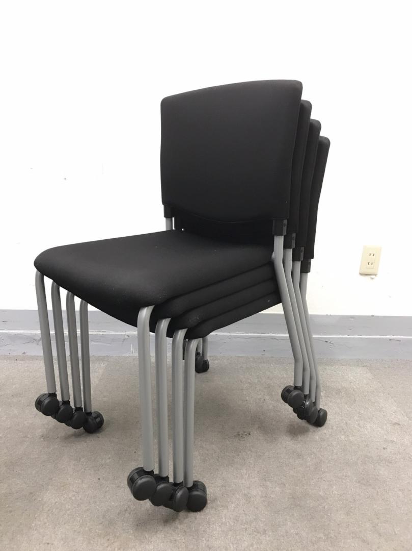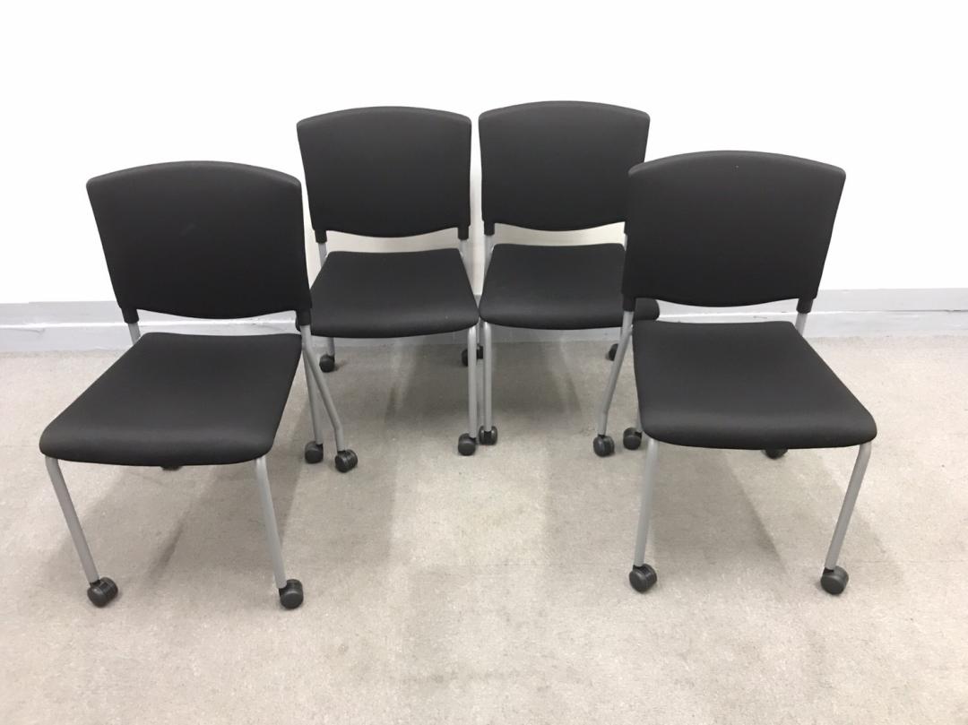 【KS】[お得な四脚セット][状態良好]会議椅子 ミーティングチェア ブラック キャスター付き- 茨城南店