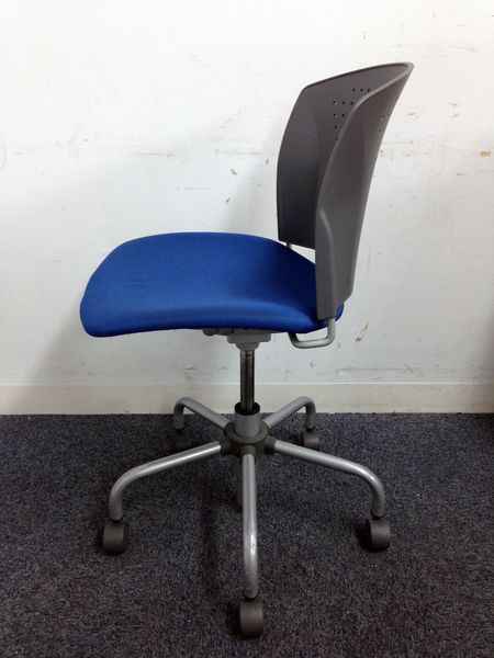 座面が明るいブルー色に、背もたれが落ち着いたグレー色と、