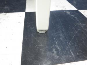 - 壊れている天板歪み、アジャスター無し、キャスター使用不可のようにそのテーブルの本来の効用を果たすための機能に不具合がある。