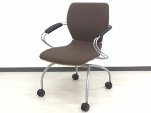 【KS】[落ち着いたブラウンカラーの会議用チェア]ミーティングチェア キャスター付き 肘付き[リフレッシュ、休憩用チェアとしてもお勧め!]- 茨城南店