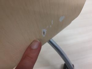 - あり黄ばみ・変色が広い範囲にうっすらある、または濃い黄ばみ・変色が一部ある。(例、座面・背もたれ、脚部等にある。)
