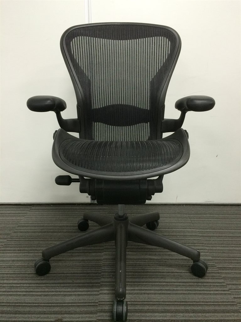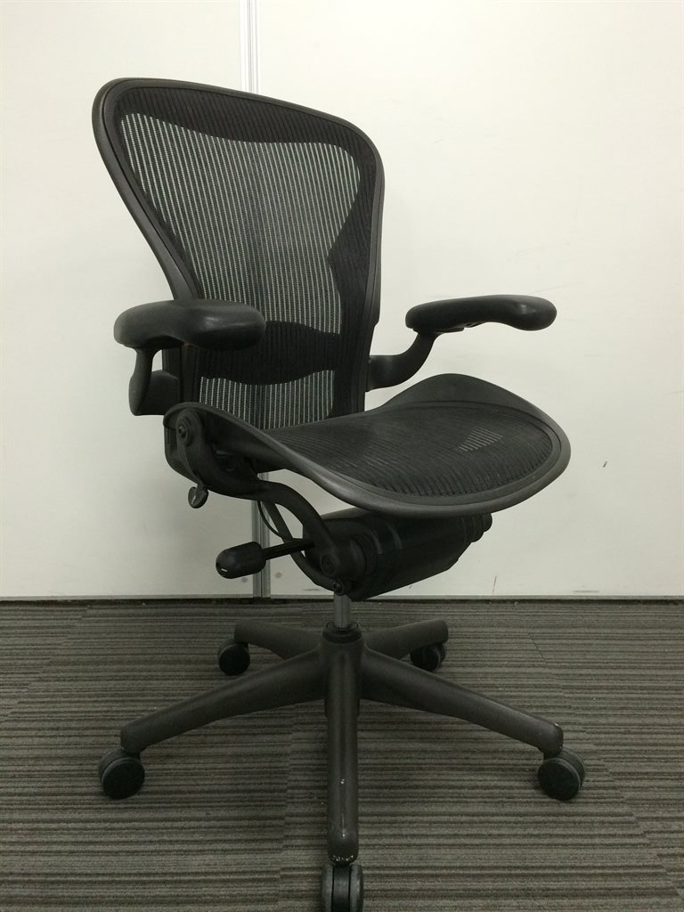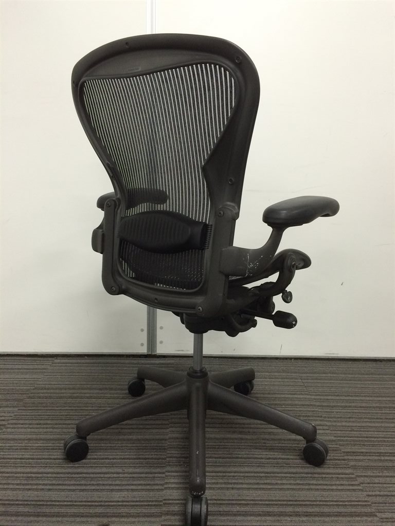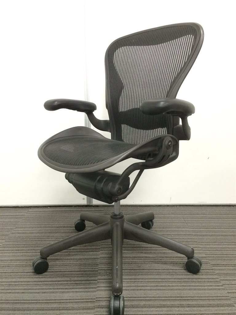 【★状態イマイチのためお安く!】■ハーマンミラー製 アーロンチェア Bサイズ 固定肘 ※キズあり・ランバーサポート無・昇降ガス圧弱めのためお安く!【訳あり特価品】