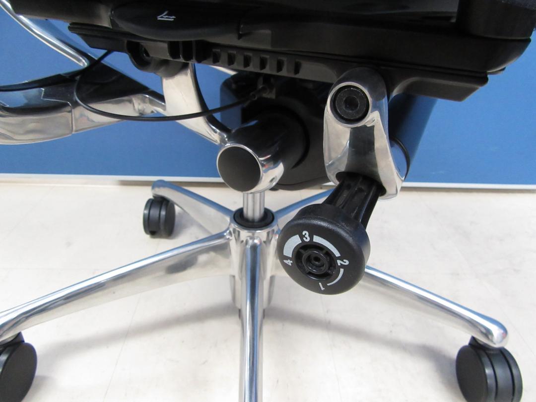- ロッキングの強弱を調整するダイヤルがございます。体型に合わせてリクライニングの固さを座ったままで調整できます。
