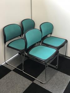 【倉庫在庫品】オカムラ製 スタッキングチェア グリーン 重ねて収納できます!206136- 在庫数