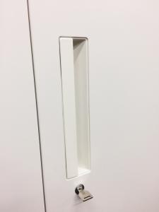 - 扉や引出しに、ラッチ機構を装備。地震時に勝手に扉や引出しが開き、収納物がユニットから飛び出すのを抑制します。