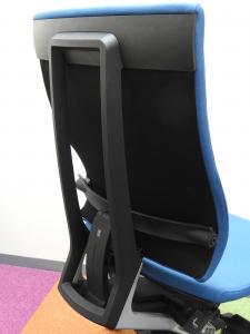 見た目は少し硬そうに見えるエラストマー素材ですが、座ってみると程よいしなり具合のやわらかな座り心地で、背中が痛くなるようなことはまるでありません。面ではなく線で支えることで、背面の通気性の良さは抜群です。