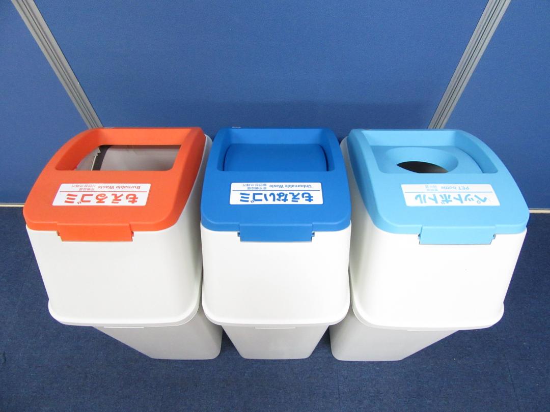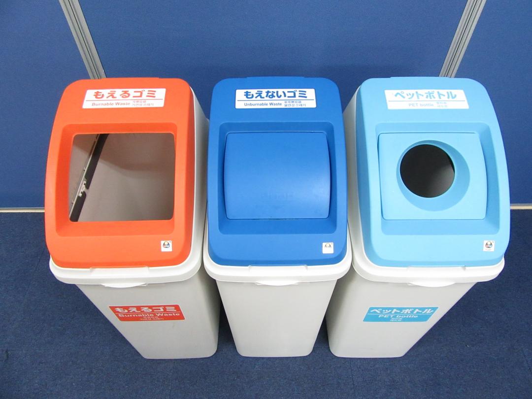 [あると便利なダストボックス!!]岡村製作所(okamura) ダストボックス■もえるゴミ・もえないゴミ・ペットボトルの3点セット!!オフィスや学校、スポーツ施設や商業施設など広い用途でご使用頂けます!![英語・韓国語・中国語対応]- 足立・葛飾店