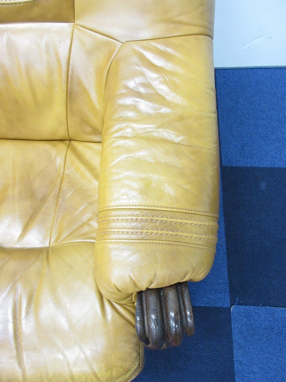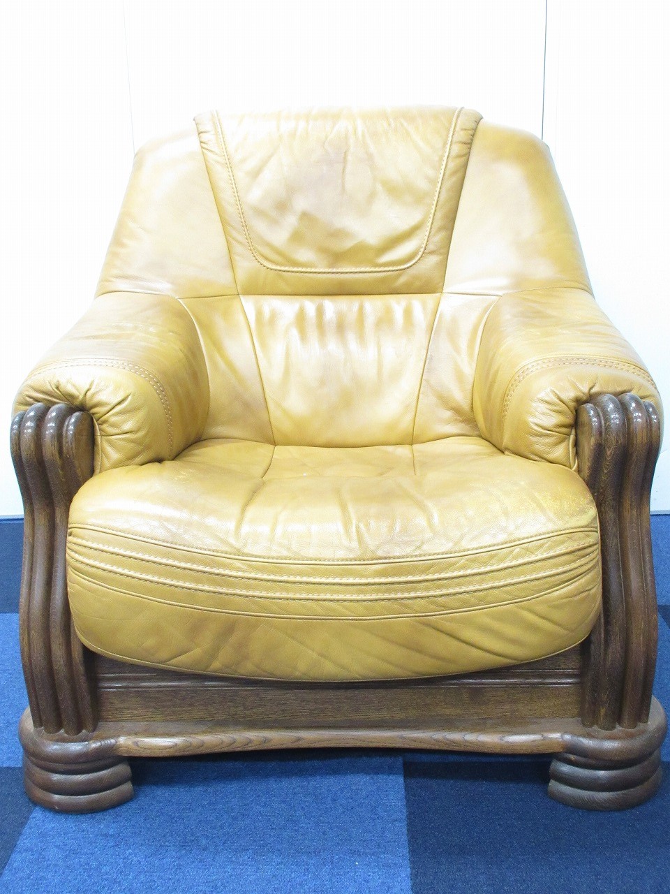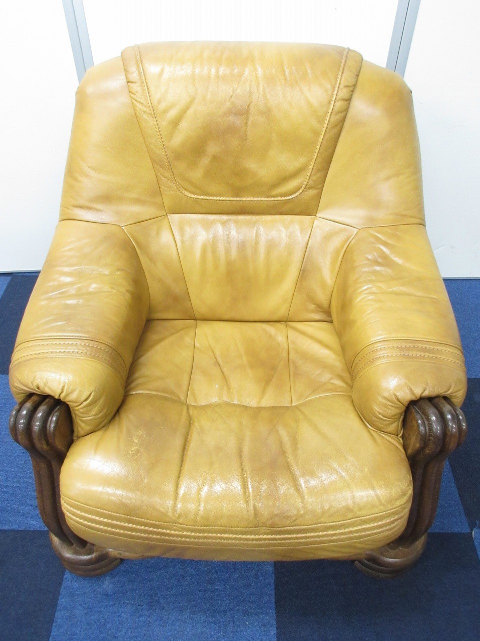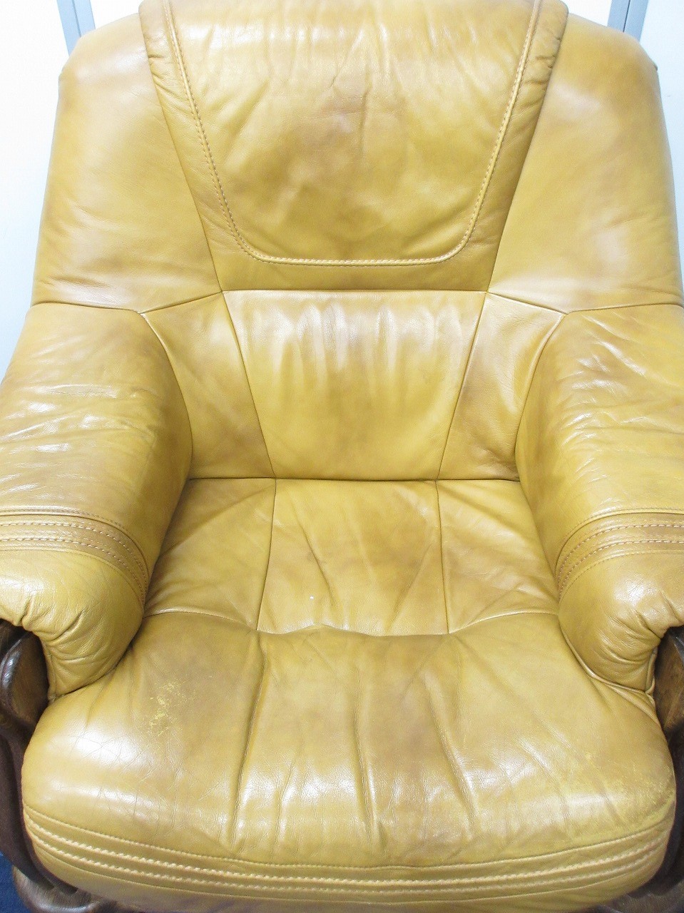 - あり黄ばみ・変色が広い範囲にうっすらある、または濃い黄ばみ・変色が一部ある。(例、座面・背もたれ、脚部等にある。)