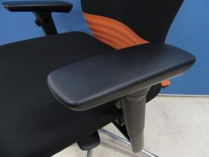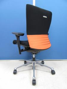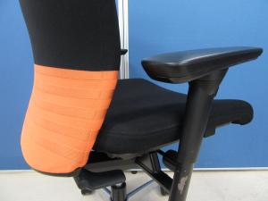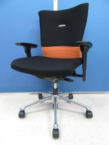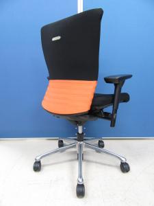 【人間工学に基づいた快適な座り心地!背あてのしなやかな曲線が背中にフィット!】■オカムラ製 フィーゴチェア (feego) 肘無ミドルバック シームレスタイプ ■肘無 ■ブラック×オレンジ ※コートハンガー外し跡のある商品となります。【入替セールにつき30%OFF!】