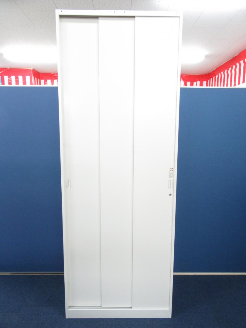 オカムラ製 人気レクトラインシリーズ ホワイト シリンダー W800xD450XH1050 3枚引戸 ※ベースなし 3枚引き違い書庫!!