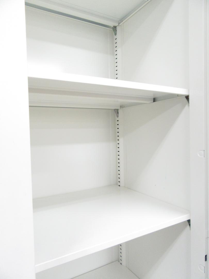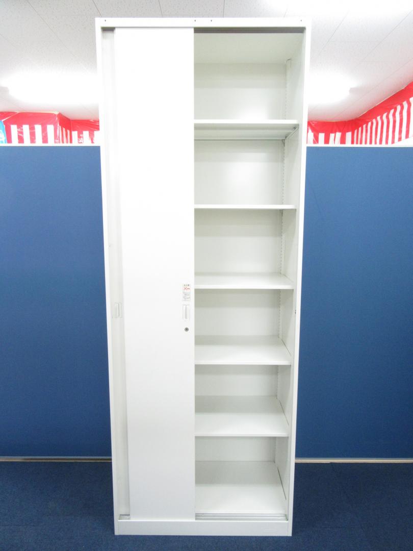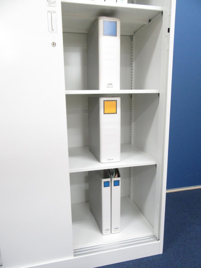 2枚引き戸書庫 オカムラ レクトライン 鍵付き シリンダー錠 ホワイト 天板無し スライド式の扉のため導線を邪魔しません