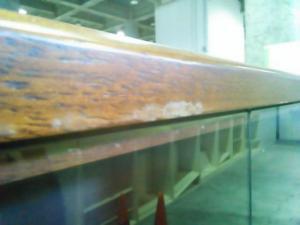 - かなり強い濃い黄ばみ・変色が商品全体にある。(例、天板、正面、背部、サイド部分にある。)