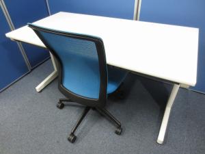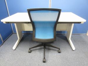 イトーキ製のホワイト平机とコクヨ製のブルーのオフィスチェアのセットになります!