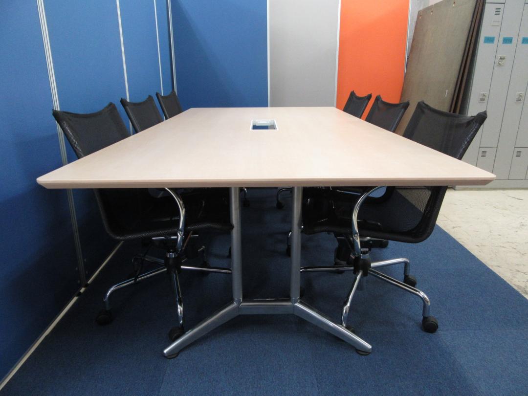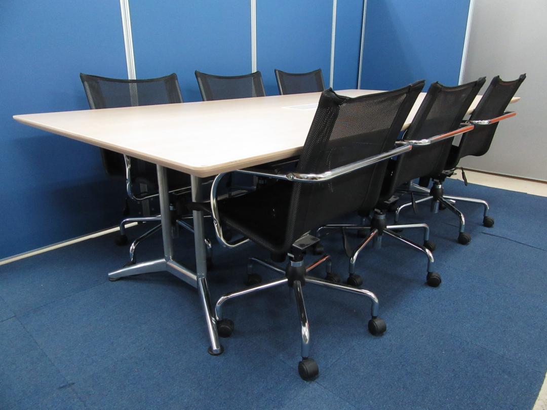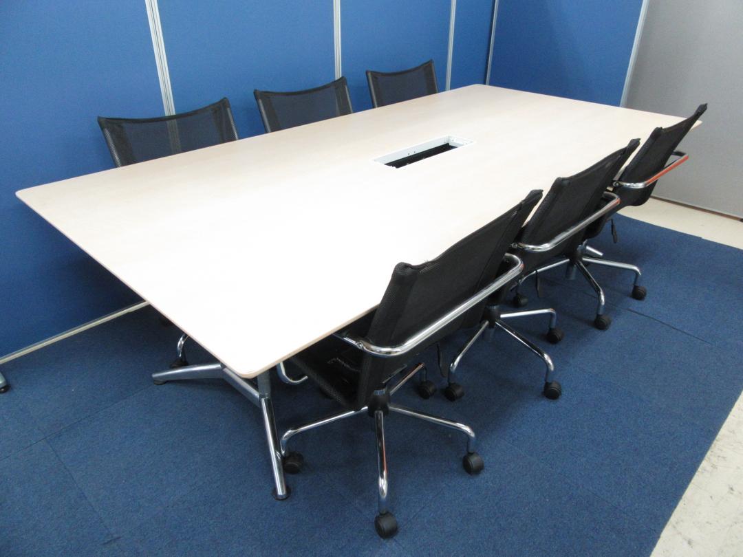 [アフター会議を始めよう!!]内田洋行(UCHIDA) ミーティングテーブル ST-500Nシリーズ+海外メーカー製 メッシュチェア6脚セット■配線カバー無しの為、特別価格にてご案内させて頂きます!!- 足立・葛飾店