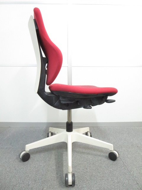 - 女性の作業姿勢に多く見られる2つの姿勢を、美しく支える背もたれ形状です。後傾しても背のラインを崩しません。