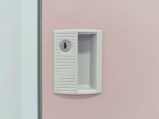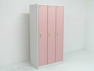 【地方倉庫在庫品】可愛いソフトピンクの扉!! オカムラ製 3人用ロッカー【RA】【578】- 在庫数