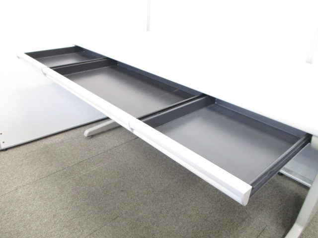 - 袖机のワゴンは、最下段がロング引出しになっており、従来より収納力120%アップ。