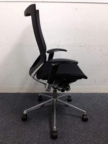 【オフィスの執務室、会議室におすすめ!】■オカムラ(okamura)製 バロン(Baron)チェア 肘付き ハイバック ■背・座面メッシュ ■可動肘 ■ヘッドレスト付き ■ブラック【硬めの座面が大人気!国産メッシュチェアの代表格!】