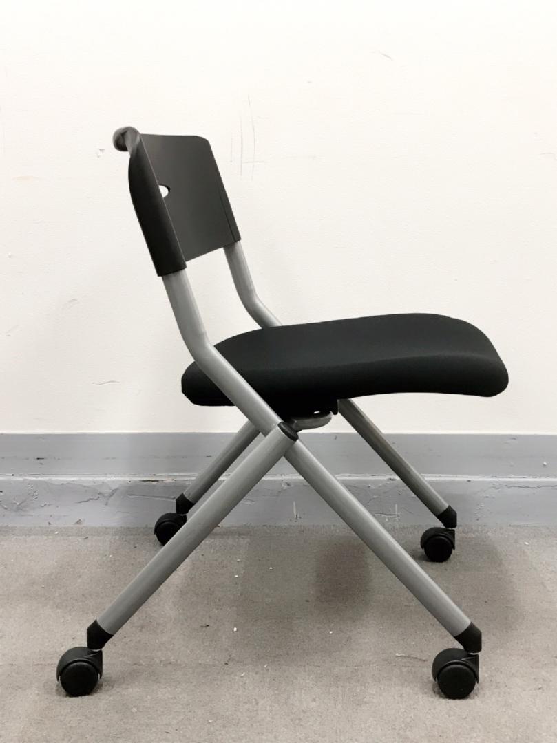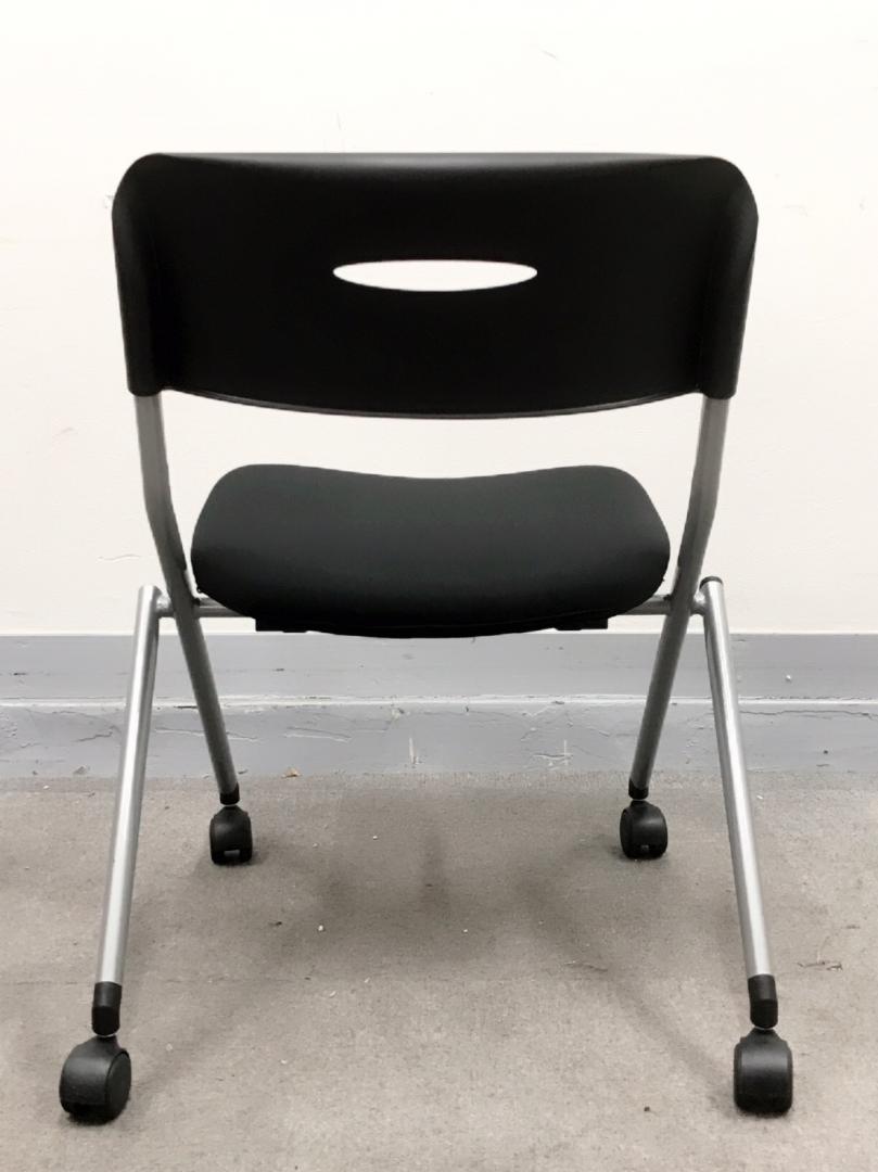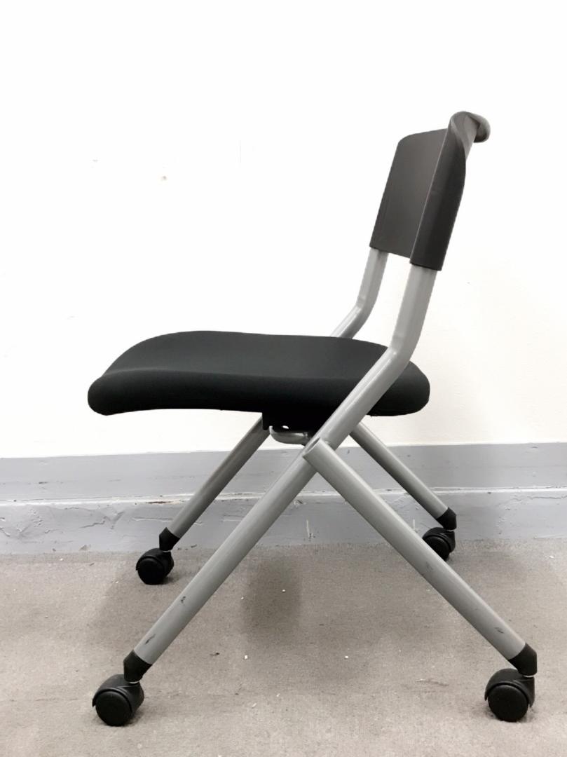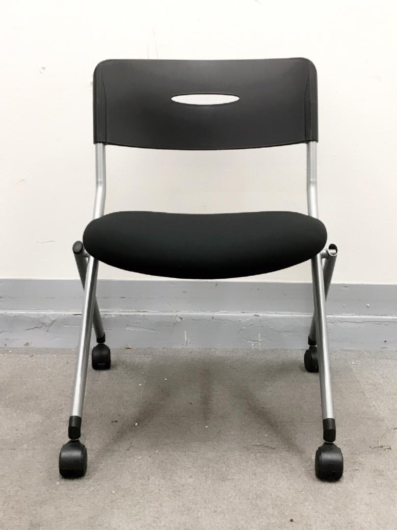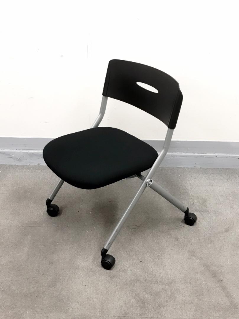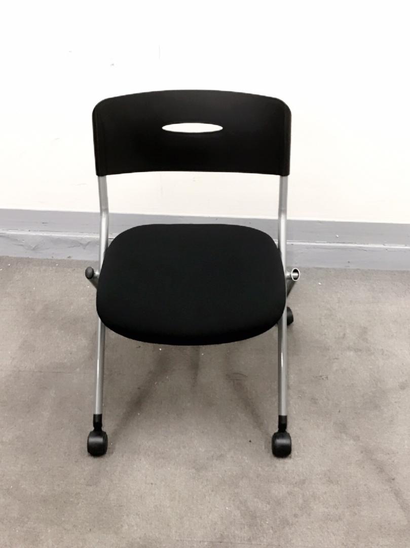 【KS】[状態良好][収納して省スペース]会議椅子 ミーティングチェア ネスティングチェア キャスター付き [定番ブラックカラー]- 茨城南店