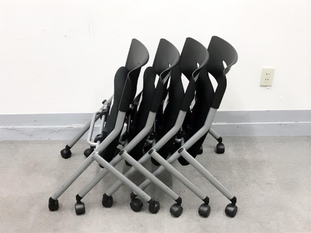 【KS】[状態良好][お得な四脚セット]会議椅子 ミーティングチェア ネスティングチェア 重ねて収納- 茨城南店