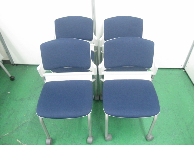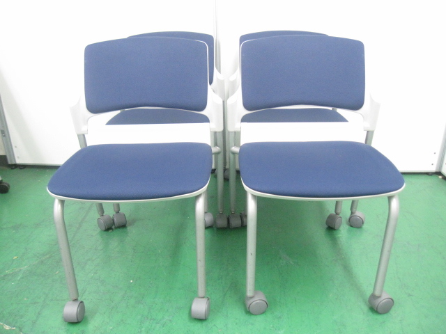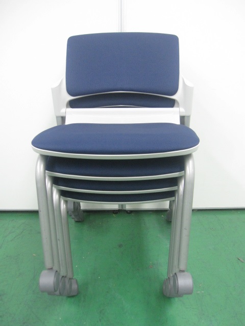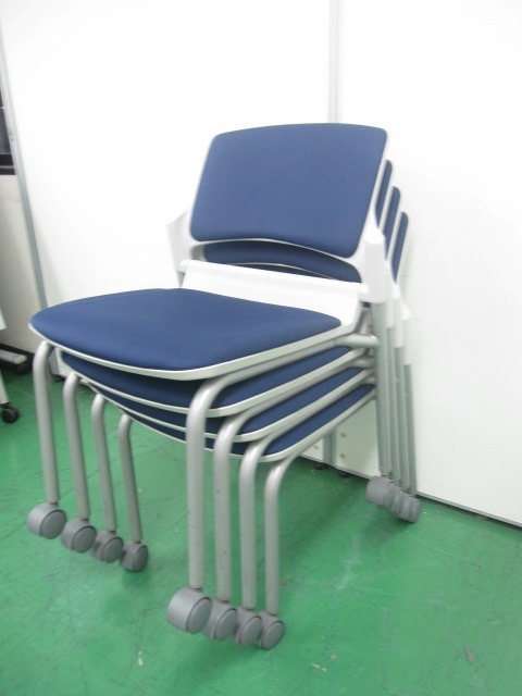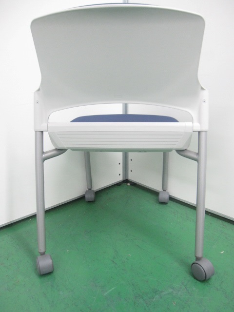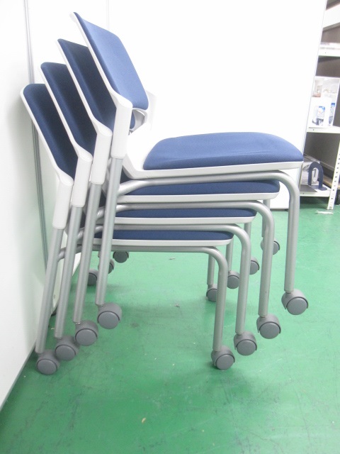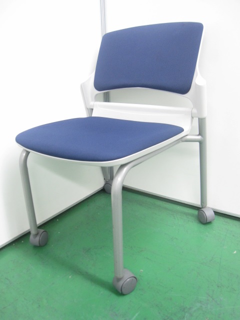 【残り2脚の為、お安く!】【キャスター付きで使いやすい!ミーティングに最適!】■ウチダ(UCHIDA)製 MF-180シリーズ スタッキングチェア ミーティングチェア ■キャスター付き ■レイズンブルー×ホワイトシェル